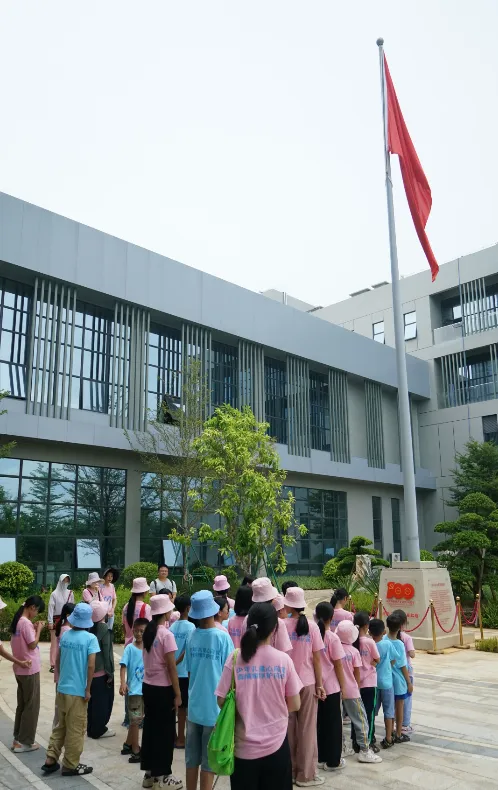 紧接着,孩子们来到了建党百年庆典红旗——070号红旗前。讲解员讲述了AG庄闲药业集团与庆典红旗的深厚渊源。孩子们听得津津有味,眼中闪烁着对党和国家的热爱与敬仰。